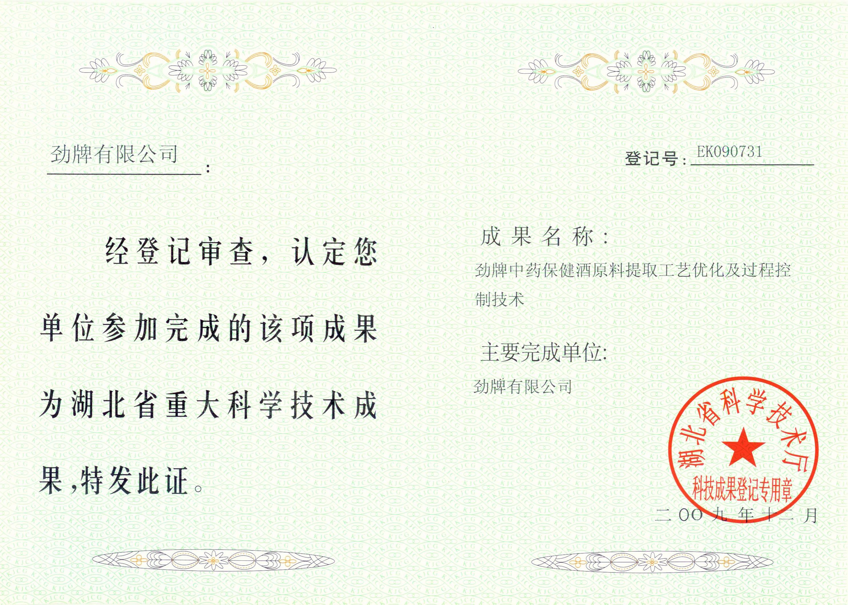 近年來,公司圍繞保健酒、草本白酒和中草藥新產品研發(fā)、產品改進和基礎應用技術,在中藥數字化提取、小曲酒釀造新工藝、中藥指紋圖譜等核心技術方面擁有自主知識產權,通過行業(yè)協會等鑒定機構技術評估22項,其中15項成果鑒定為“國際領先”水平,7項成果鑒定為“國際先進”水平。