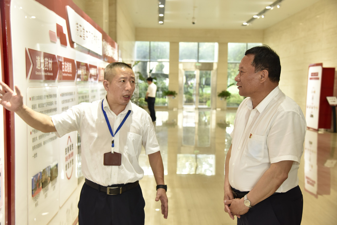 考察工作中,共享智慧藥房方便快捷的智能調(diào)配機,勁牌研究院寬敞明亮的工作環(huán)境,提取車間井然有序的流程管理,給巴音克西留下了深刻的印象。他贊揚了企業(yè)科學(xué)健康發(fā)展的方向。